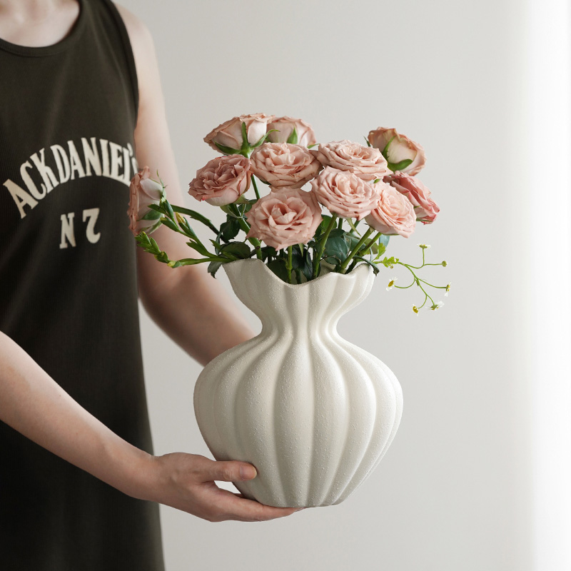 Elevate your interior with the classic white ceramic flower vase, a true embodiment of timeless elegance. Crafted in a textured coarse pottery style, this vase boasts a sculptural silhouette that seamlessly integrates artistic charm and minimalist design. Its matte finish adds a refined touch, making it an excellent choice for complementing both modern and vintage-inspired decors. Whether you’re seeking an understated accent or a statement piece, this vessel makes styling effortless and impactful.