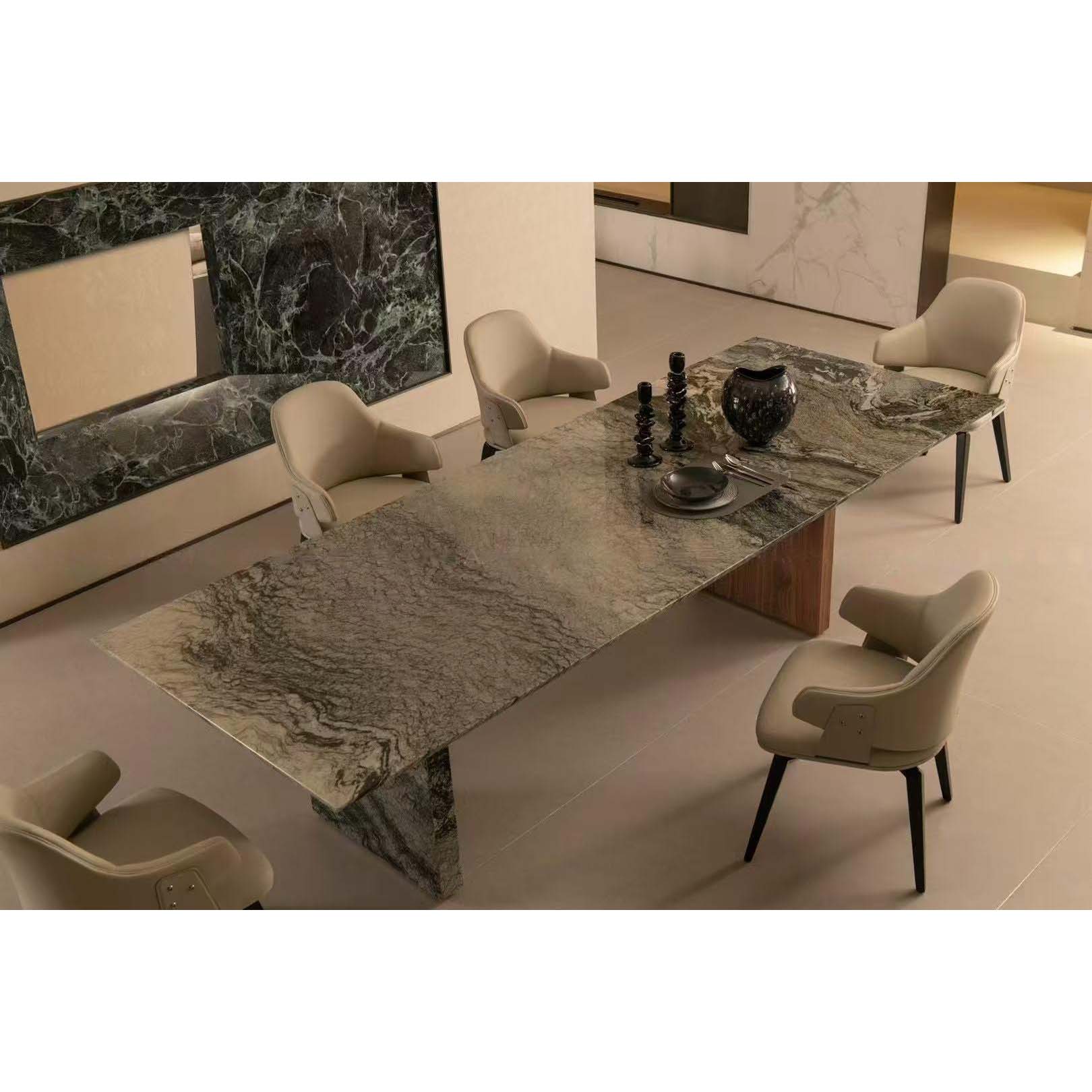 Elevate your dining space with our Minimalist Italy Luxury Leather Dining Chair, crafted to embody refined European elegance. Upholstered in premium light grey leather, this chair offers a soft, smooth touch and exceptional durability, perfect for upscale hospitality or residential projects. The ergonomic armrest design ensures comfort for extended seating, while the seamless curves of the backrest provide a sophisticated modern aesthetic. Supported by solid wood legs with a rich walnut finish, the chair combines stability with timeless style. Ideal for high-end restaurants, hotels, luxury homes or designer interiors, this piece reflects Italian craftsmanship at its finest. Customization available for bulk orders.