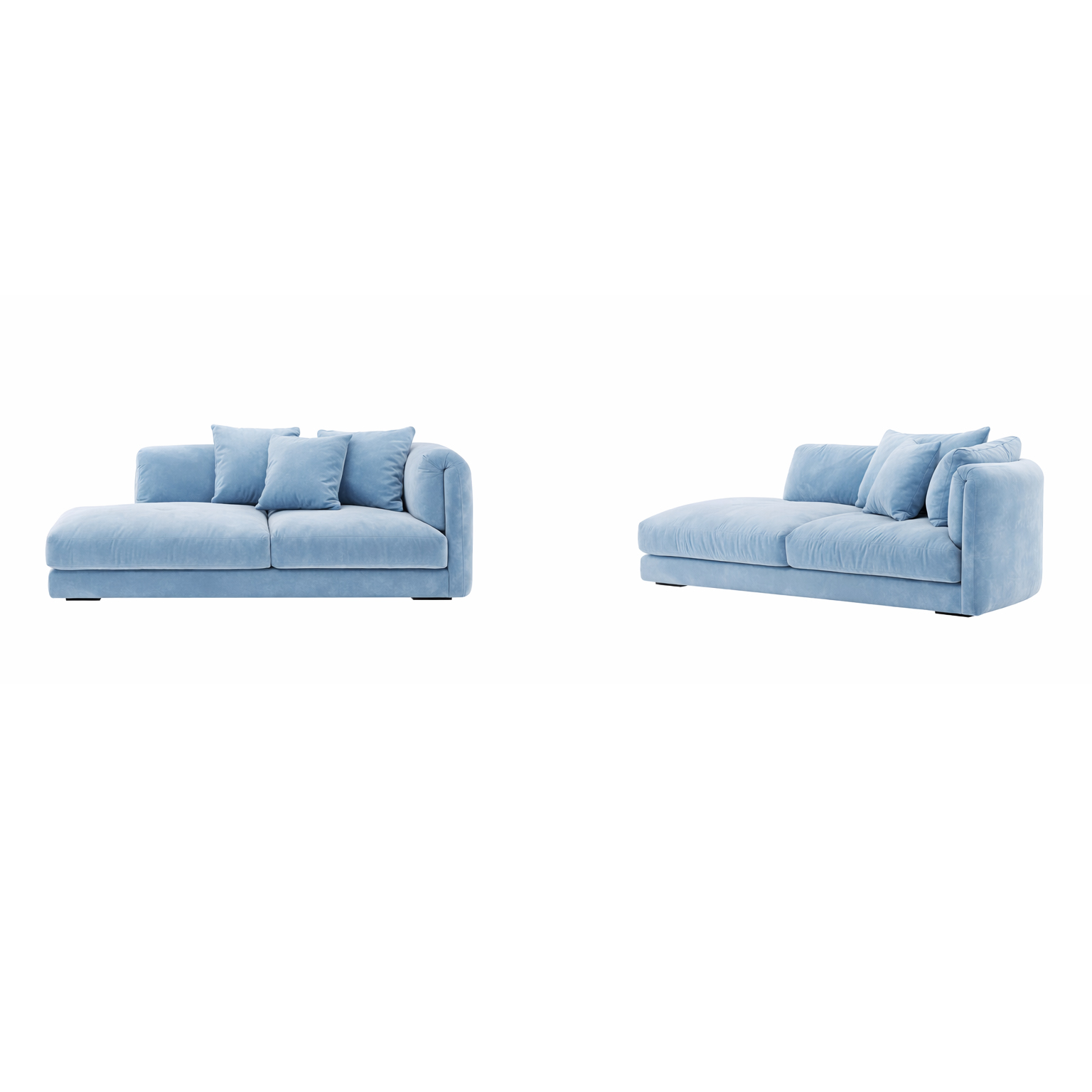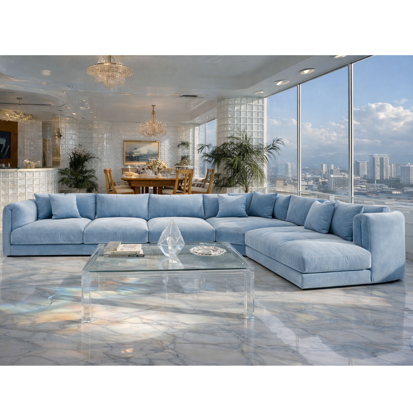Retro Baby Blue Modular Sectionals, upholstered in premium plush velvet for ultra-soft tactility, bring a timeless vintage aesthetic to modern commercial & residential spaces.