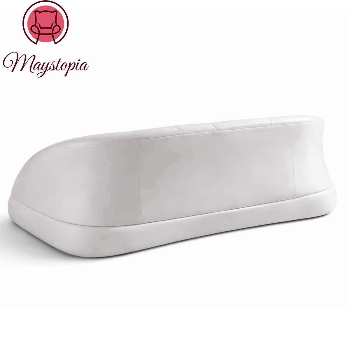 This sculptural white leather wavy sofa is the epitome of modern luxury, designed to transform any interior into a sophisticated, intimate retreat. Its continuous, fluid, curved silhouette flows seamlessly from arm to arm, creating a dynamic, organic form that stands out as a work of art.