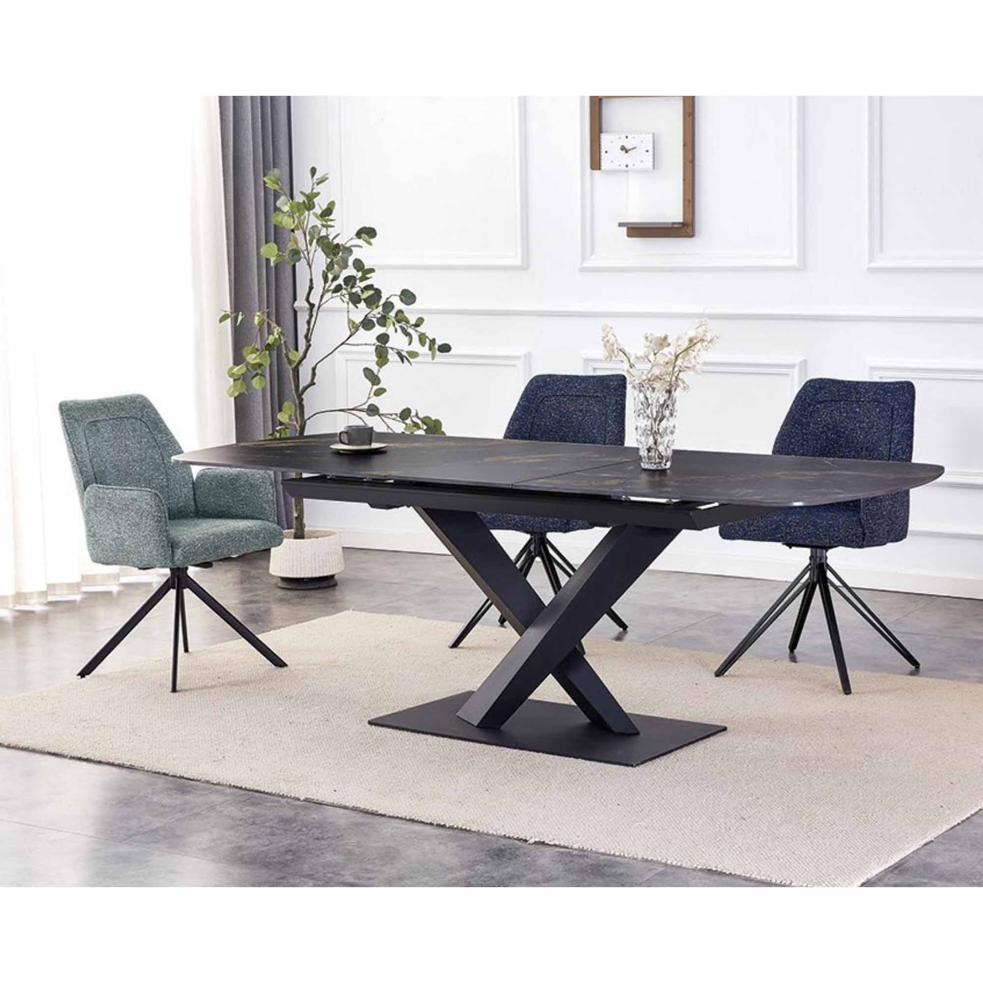 This modern fabric restaurant dining chair with armrests is specially designed for commercial dining spaces. Upholstered in premium breathable fabric, it offers a soft, comfortable touch. The smooth curved armrest design enhances dining comfort with added support. Built with a sturdy frame and reinforced metal legs, it ensures excellent durability and load-bearing capacity. Available in light green and deep blue, it blends easily with various interior styles. Ideal for upscale restaurants, cafes, and hotels, this chair is a perfect choice for creating a stylish and inviting dining environment.