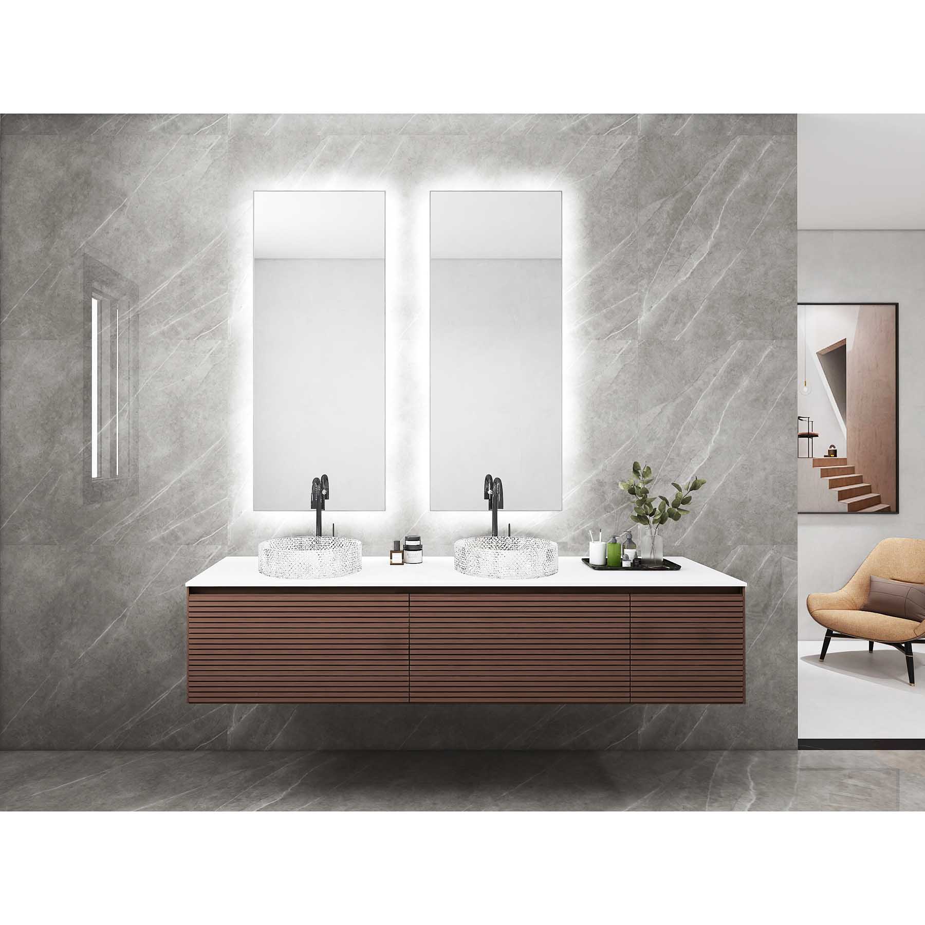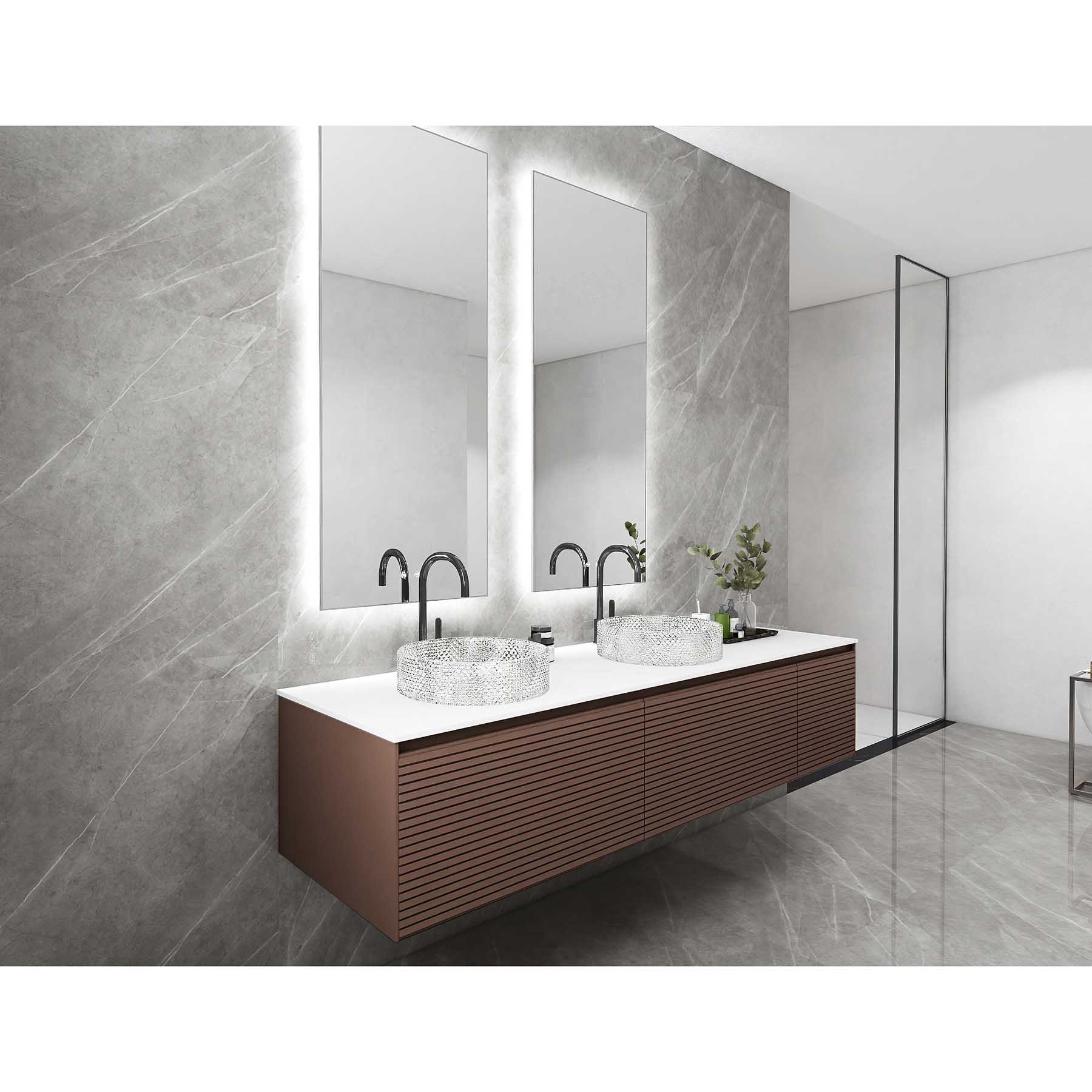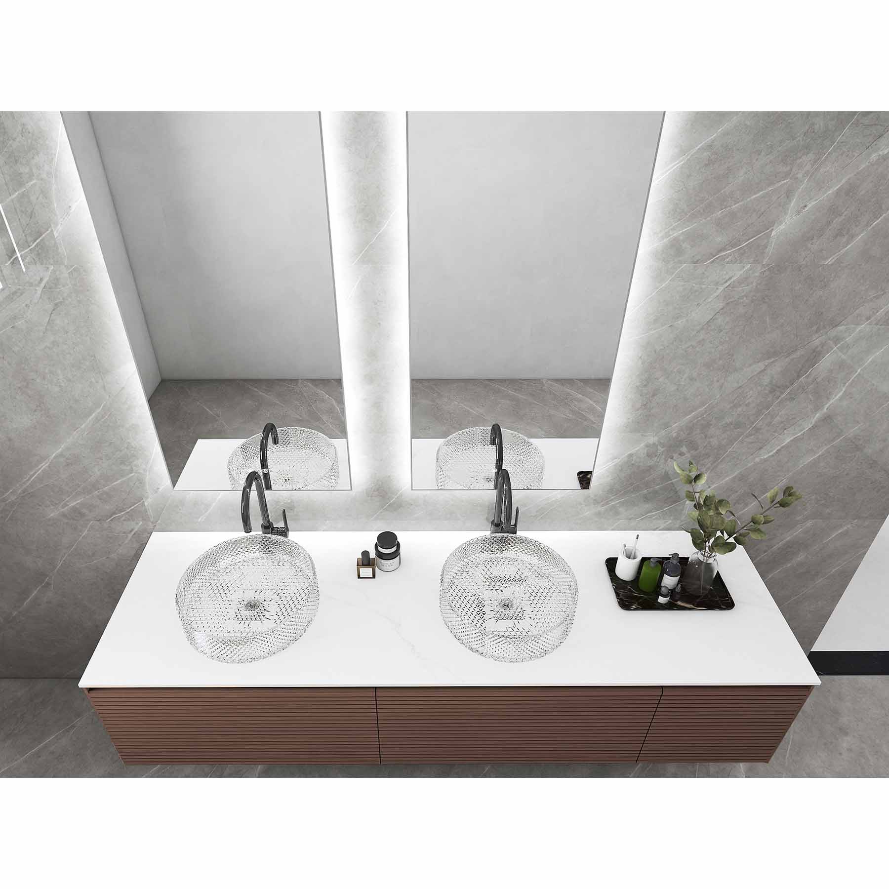 Med sin flydende vægmonterede struktur, forfængeligheden holder gulvpladsen åben, får rummet til at føles mere rummeligt, samtidig med at det giver nem adgang til rengøring. Ideel til opskalere boligrenoveringer, boutique hoteller, eller villaprojekter, der værdsætter rene linjer, holdbare materialer, og naturligt inspirerede toner.