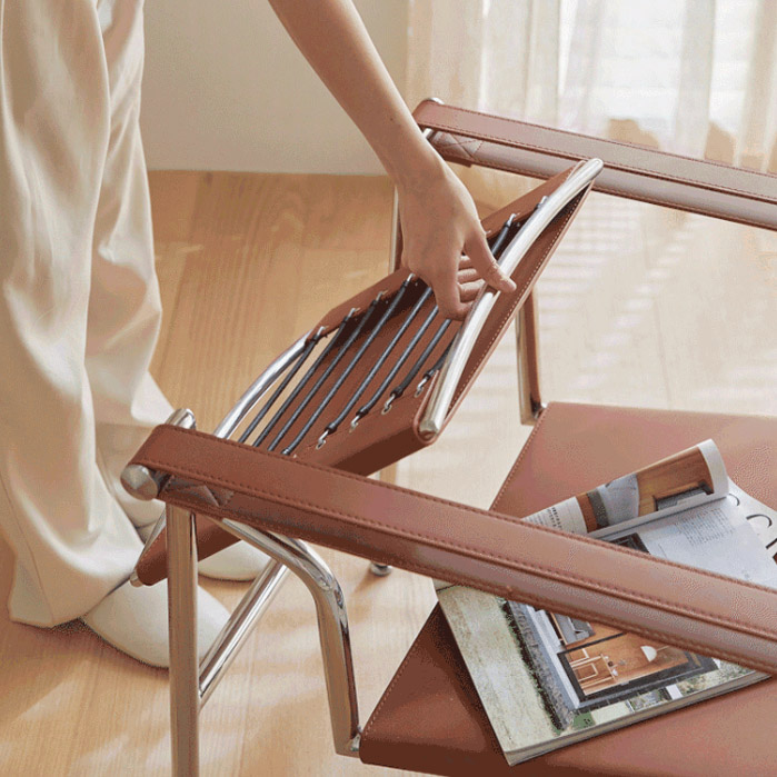 Material: Polished stainless steel frame, premium leather