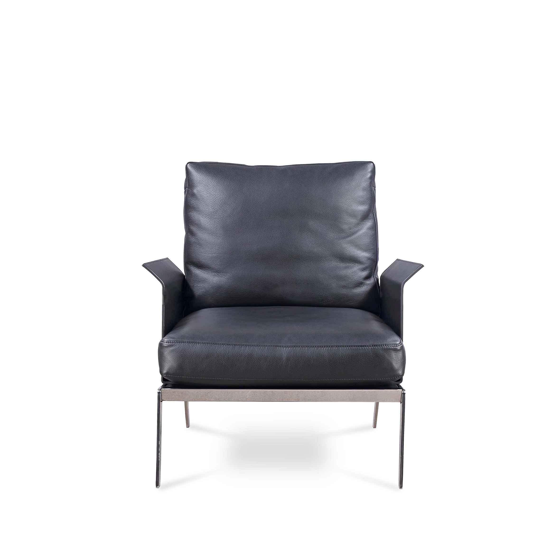 Whether used in a corporate office, hotel lobby, or luxury home, this leather armchair creates a strong visual impact with high-end craftsmanship and versatile appeal.