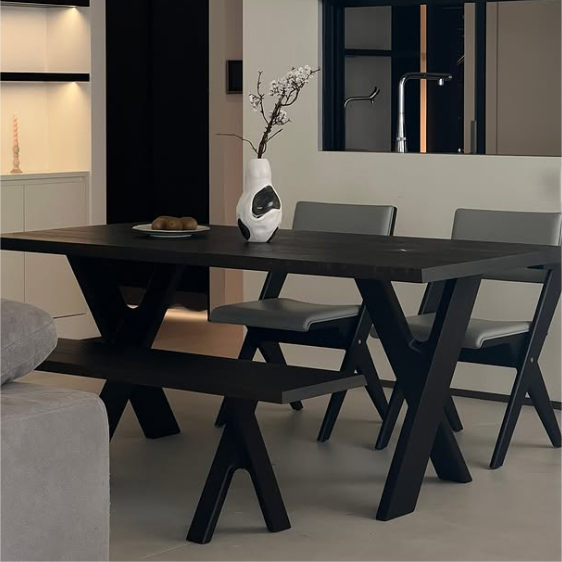 This dining table and bench set is crafted entirely from high-quality solid wood, ensuring durability and longevity for commercial use. Designed with elegance and functionality in mind, the table legs feature a unique, flowing form inspired by natural movement, offering a contemporary aesthetic that stands out in hospitality environments.